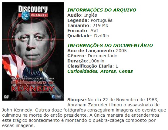 Clik no link para baixar O ASSASSINATO DE KENNEDY: