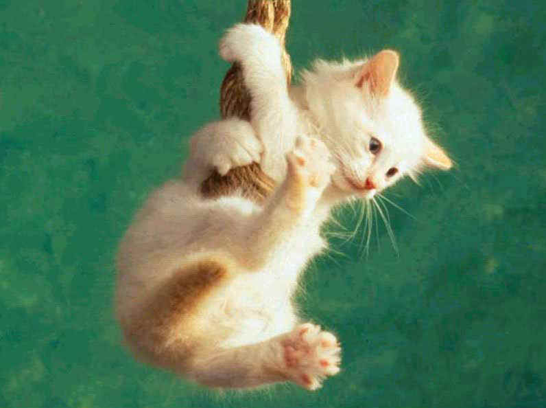 A transmissão das mensagens nervosas entre os olhos, os músculos e as articulações do gato acontece de forma muito rápida e faz com que ele tenha grande equilíbrio. Quando o gato cai, os olhos e o vestíbulo de seu ouvido enviam para o cérebro uma mensagem sobre a posição da cabeça em relação ao solo. O cérebro responde com comandos nervosos para os músculos, que corrigem a postura da cabeça e alinham o corpo do animal. Isso tudo acontece em frações de segundo e o gato chega ao solo com os pés para baixo.