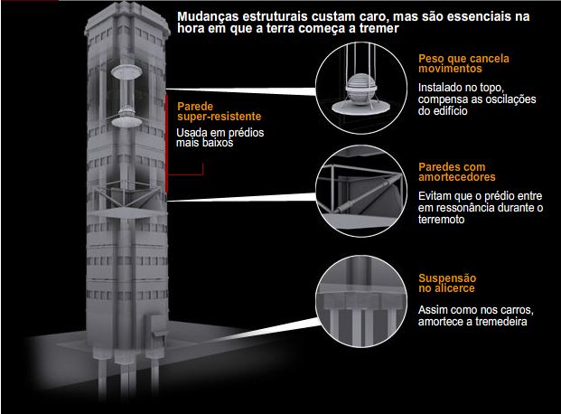 O Japão, que constantemente é atingido por terremotos, foi o precursor desse tipo de construção. O sistema consiste em colocar molas no meio da fundação dos edifícios. Assim, o prédio balança por igual durante os tremores. É esta oscilação uniforme que impede o edifício de cair. Nos Estados Unidos, a técnica é intercalar camadas de borracha natural e chapas de aço na construção.
