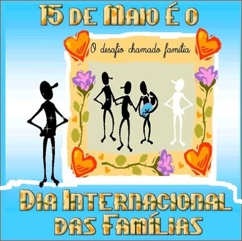Hoje é Dia Internacional da Família. Esta data é importante para lembrar o papel nuclear da família na sociedade e para impulsionar a adoção de medidas no plano nacional e internacional com o fim de melhorar a condição da família. A família é o primeiro contato social de uma criança, onde ela aprende a conviver com outras pessoas, a respeitar regras, a se comportar bem, a respeitar seu próximo e a desenvolver sentimentos como afeto, carinho, amor, proteção dentre outros. Você pode ler o Fato Histórico do dia acessando a página do Professor João Paulo na Internet: PROFESSORJOAOPAULO.COM